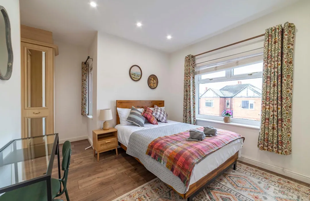 De 1-slaapkamer Beautiful Three Bedroom House - Manchester Escape villa ligt op 15-minuten rijden van de Kunstgalerie van Manchester en nodigt gasten uit om te genieten van een zonneterras.